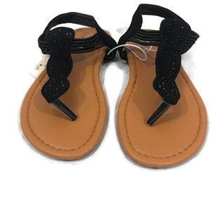 Brand new with tags!!! Adorable back thong sandals with heel straps. Black gem details, as well as elastic for a comfortable fit. Bobbie Brooks Girls Brand