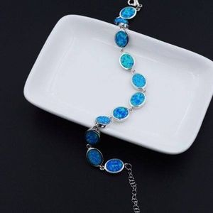 NEW Inlaid 925 Stamped Silver Lab-created Fire Opals ~ BRACELET SIZE 8"