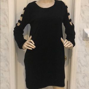 BLACK CAGE SLEEVE KNIT DRESS