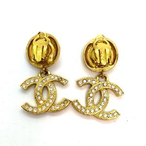 CHANEL Large Vintage Crystal Bling CC Clip On Earrings