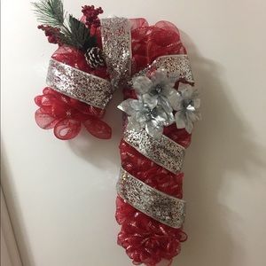 This is the an amazingly gorgeous Christmas wreath. It’s unique and so classy for your holiday decor. Deco-mesh handmade. Red & Silver