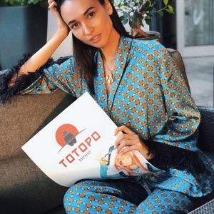 Zara blogger Fav! NWT blue print feather kimono