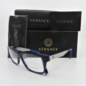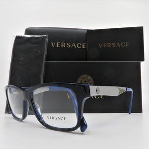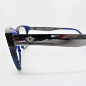 Versace MOD 3245 5237 55mm Men Black/Blue, Metal Medusa New Rx. Glasses. 100% Authentic. The frame is Black and Blue Havana Acetate, Rectangular shape, Full Rim. The temple is Silver Metal, Medal Medusa and Blue Acetate tips. Width/Bridge/Temple size is 55mm 17mm 145 mm. Item is shipped with the Versace box, tag, microfiber cloth and the certificate of warranty. Made in Italy.