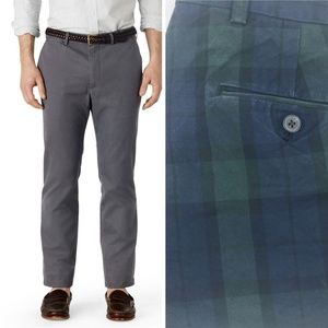 Club Monaco Men’s Pants Davis Slim Fit Green Blue Tartan Plaid Slim Fitted Cotton Trousers Flat Front Tailored Narrow Leg Zip Fly Preppy Holiday Work Professional Golf