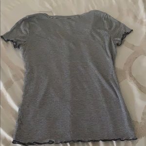 Has ruffles at the bottom & at the sleeve ends.