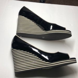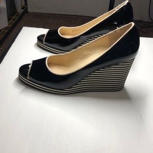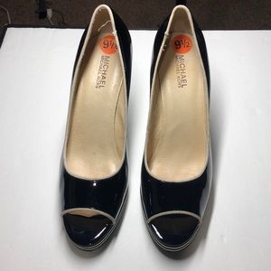 In good condition Michael Michael Kors black wedges some marks on the back and the inside by the toes is coming up size 9.5