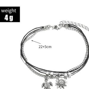 Hot Gothic Sister Layer Sun Silver Turtle Anklet