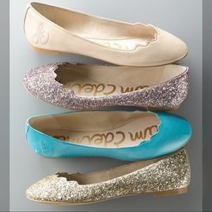 Sam Edelman Alaine adorable scalloped pink glitter flats. Put a little sparkle in your daily outfit or wear for a special event. Gently worn less than a handful of times. No missing glitter. Size 7