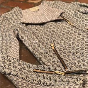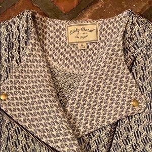 Like new! Worn once twice, in excellent condition; no flaws. Size is medium, true to size. Let this cozy, stylish, and warm jacket take your cool evenings to another level! Please note all the beautiful details-including the gold zippers and buttons and front pockets! Wear alone or with layers!