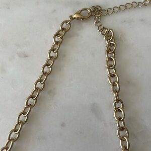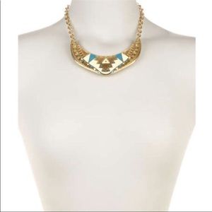 14k gold plated textures & epoxy Coates tribal print crescent shaped bib necklace. Pendant: 4.5in(L) 1.5in(W)