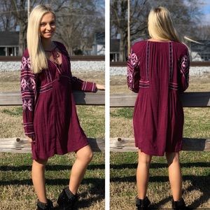 🔥FREE PEOPLE🔥All My Life Boho Mini Dress Wine Small NWT