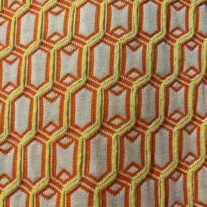 Super cute, almost cheerleader style dress! Tangerine with cream and yellow accent pattern, this vintage frock is definitely hand made from the past. Fits like a larger small (26-27 waist, 32-36a/b chest, medium top), the empire waist followed by a pleated front is super cute and flattering. For the vintage lover or someone open to a pop of color, this dress is for you! It need a little bit of YLC with the closure above the zipper but nothing a few stitches and new eye hook can’t solve.