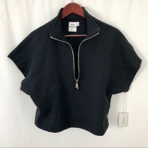 New with tags! Good American by Khloe Kardashian. A retro oversized fit distinguishes a soft cotton-fleece sweatshirt finished with cutoff sleeves and a cropped hem that furthers the throwback vibe. Zipper sometimes get stuck halfway up but still zips.