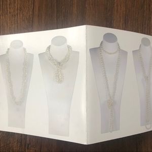 80 inches creamy white cultured fresh water pearls. Clasp is sterling silver. Can be worn in variety of ways. In great condition. Never Worn.