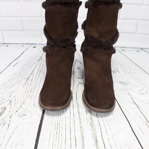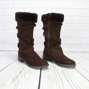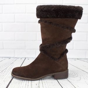LL Bean Brown Suede Leather Shearling Lined Side Zip Tall Winter Boots 8.5 M