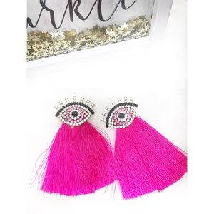 Evil Eye Fringe Statement Earrings