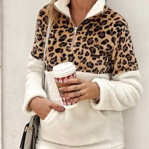 Leopard Print Contrast Faux Sherpa Teddy Pullover Sweater