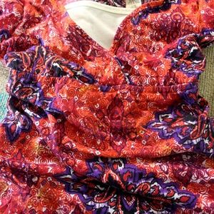 Super sexy top with a bohemian flair. Very comfortable cotton fabric, that is not see through. It is very flattering and looks wonderful with a pair of jeans. Faux undershirt to show off your chest ladies!