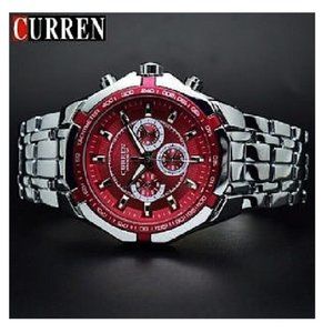 NEW CURREN Men's Watch Red Dial Stainless Steel Water Resistant Man Watches Luxury Business Analog Quartz Mens Watch