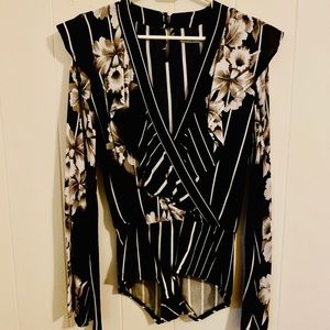 BRAND NEW. NEVER WORN. Kimono Sleeves, deep v-neck, and has a moderate bottom coverage. Very cute with bell bottom jeans.