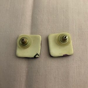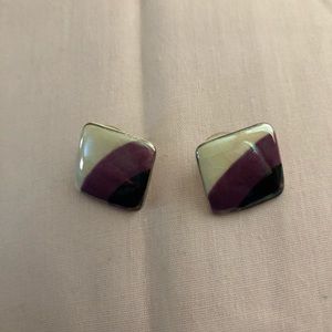 Vintage Pierced Porcelain Earrings - Black, Purple, Cream