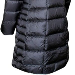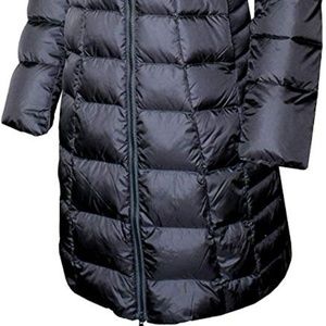 Resting at the knee, this long down parka delivers exceptional thermal warmth thanks to the 550 fill down insulation. Quilted construction keeps down shifting, eliminating potential cold spots. Snap-front closures disguise a full-length front zip to provide added protection in cold temps. Insulated, adjustable, snap-off hood lets you adjust to variable conditions.( NEW WITH TAGS) - MED (CHEST 20"-HIP 22"-LGTH 38"-SLV 25") ~ SMALL (CHST 19"-HIP 21"-LGTH 36"- SLV 24")