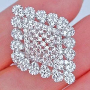 2.6Ct White Gold Round Diamond Size 7 Cluster Ring