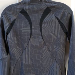 So many amazing details in this flattering and functional athletic jacket. The subtle geometric pattern looks great AND gets illuminated at night, thanks to Propellite® technology. Seams are artfully placed for both function and design. How cool is that back!