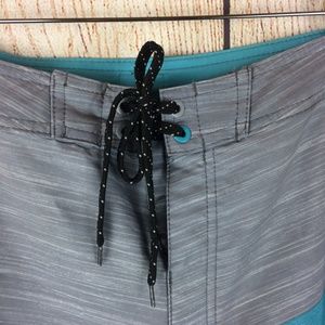 Men's grey and aqua color block athletic board swim shorts by Burnside.