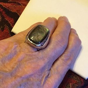 Awesome 925 Mystic Sterling Size 6 Men’s or Womans. Excellent Made Broad Shank Beautiful swirl of colors as it hits various lighting. Simply Beautiful