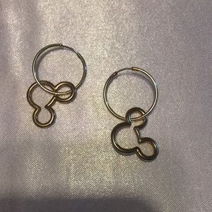 Gold Mickey charm hoop earrings u can remove Mickey head if u like and just wear the hoops.. smoke free home..I do not see a marking on them