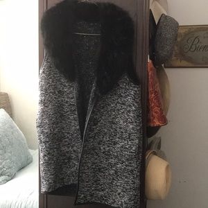 Talbots fur/leather trimmed vest