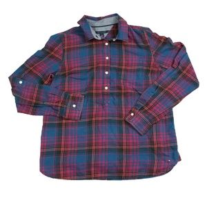 Tommy Hilfiger Women's cotton Half Button down plaid flannel Shirt Sz M