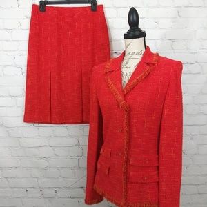 St John Couture Tweed Fringe 2 pc Skirt Blazer Set