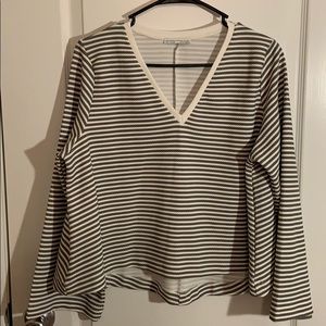 ZARA striped V neck semi cropped flowy high low shirt with wide long sleeves no stains or flaws