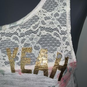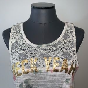 BETHANY MOTA Country Rose Cream Lace Slit Back Tank Top Heck Yeah NWTS