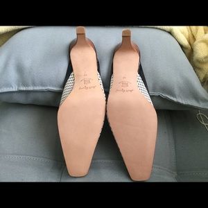 Never worn beautiful black/white 3.5” Heels. Trim is black patent leather. Made in Spain.