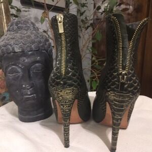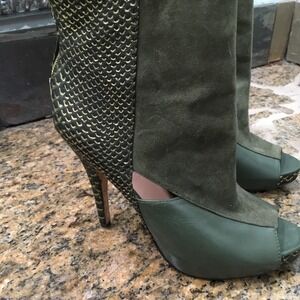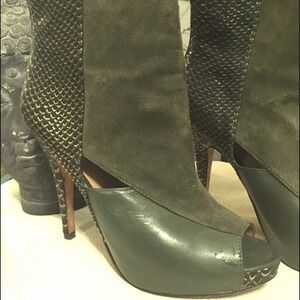 Charles David Designer Y2K leather Suede Snake embossed peep Toe Heels 6.5
