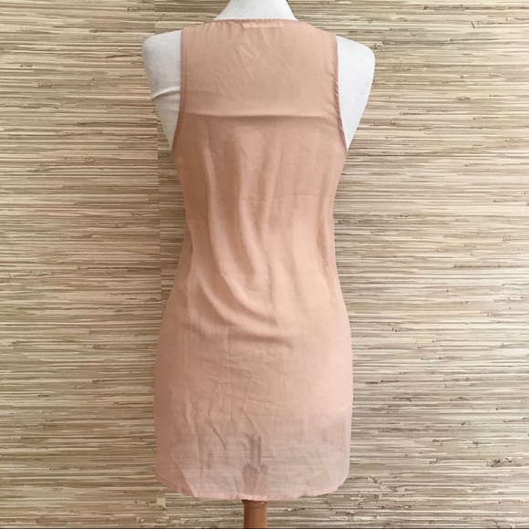 It’s time to sparkle and shine! Start with this tank top by Lush. In a peachy/blush color, the front is all sequins and the back is a sheer polyester chiffon that covers your butt. In excellent condition - no missing sequins!