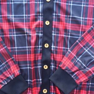 Vintage Grunge Tartan Plaid Gold Button Cardigan