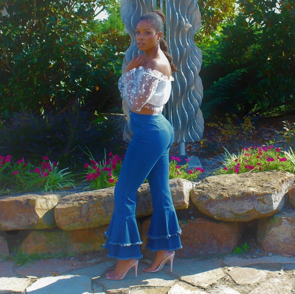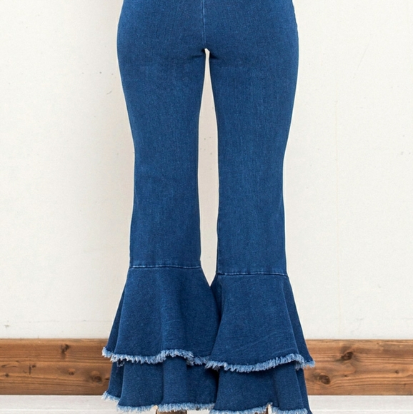 * BELL BOTTOM DENIM WITH TIERED RUFFLES