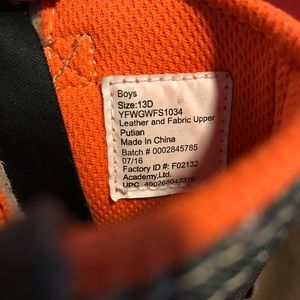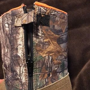 “Game Winner” Camouflage Boots! Used although well kept, orange color lining inside, size 13D, camo color, zipper and Velcro secure on inner parts of each boot, sprayed with protector, round toe, please see picture for material types, soft velvety feel to brown portion of boot! No original box although will package in an alternate box for shipping 😬