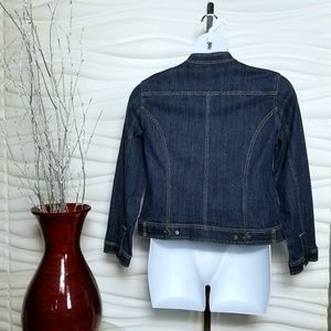 MOTO STYLE JEAN JACKET OFFERS THE RIGHT AMOUNT OF STRETCH FOR COMPLETE EASE OF MOVEMENT AND COMFORT. EXCELLENT CONDITION...LOOKS NEW!