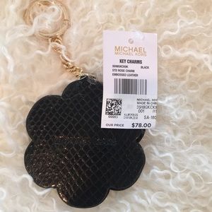 This is such a pretty studded and embossed leather rose key chain charm by Michael Kors. It is eye catching and would look wonderful on just about any color bag. The color is black with gold and glass studs. It is an authentic Michael Kors product bought from a Michael Kors store. It would be a great Christmas present for your Michael Kors lover friends!