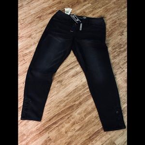 This brand NEW blackish gray jeans from Seven7. Skin-Luxury-Fit. Has 3 metal buttons at the ankle, 2 back detail pockets, 2 front pockets, zipper/button closure, has stretch through out. Size 14 Roughly measures 36” waist, 29” inseam and 39.5” long.
