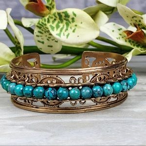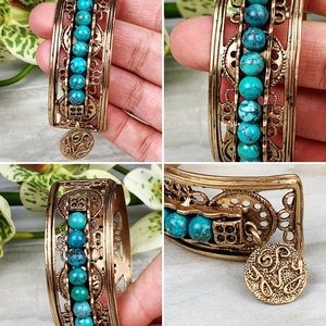 Boho Festival Bronze Round Turquoise Beaded Cuff
