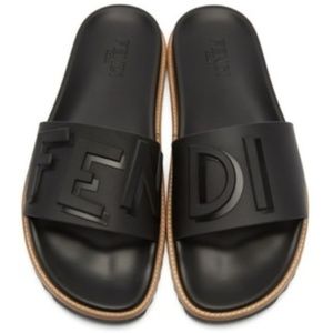 Fendi Black Rubber 'Fendi Vocabulary' Slides Sandals