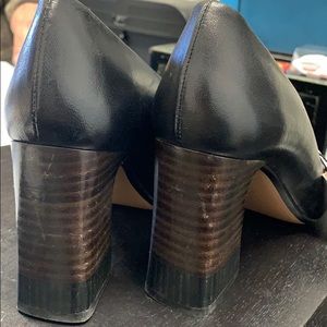 Brand new with tags black leather block heels some marks on heels from storage . Size 39/8