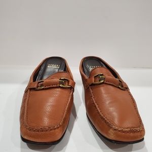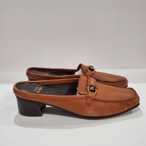 Stuart Weitzman women mule shoe size 8.5 brown leather backless heel loafer shoe