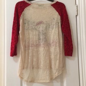 Super cute Christmas shirt. Great sleeves stylish with red cut out design and shirt itself is a little sheer but a tank looks super cute underneath ... merry Christmas Y’all ... fits between small/medium I would say a size 4-6